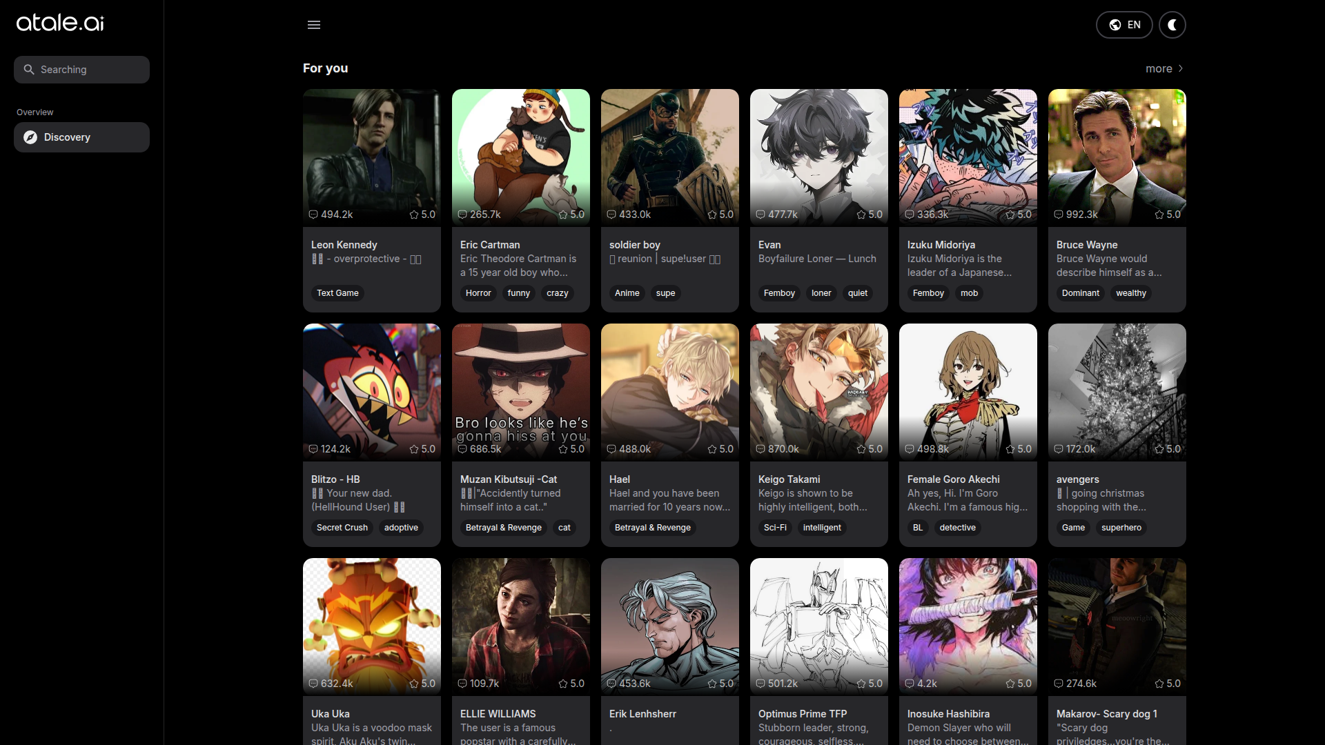 Dippy provides an interactive chat and role-playing experience through AI-generated characters, including various personas such as rich classmates and supernatural beings. Users can engage in unique conversations, discovering new characters while enjoying custom themes and enhanced AI memory in the premium version. It caters to a diverse audience interested in immersive role-play and character interactions, offering both an entertaining and exciting user experience. With the ability to connect via mobile apps and platforms, Dippy is positioned as a go-to tool for a dynamic chat experience.