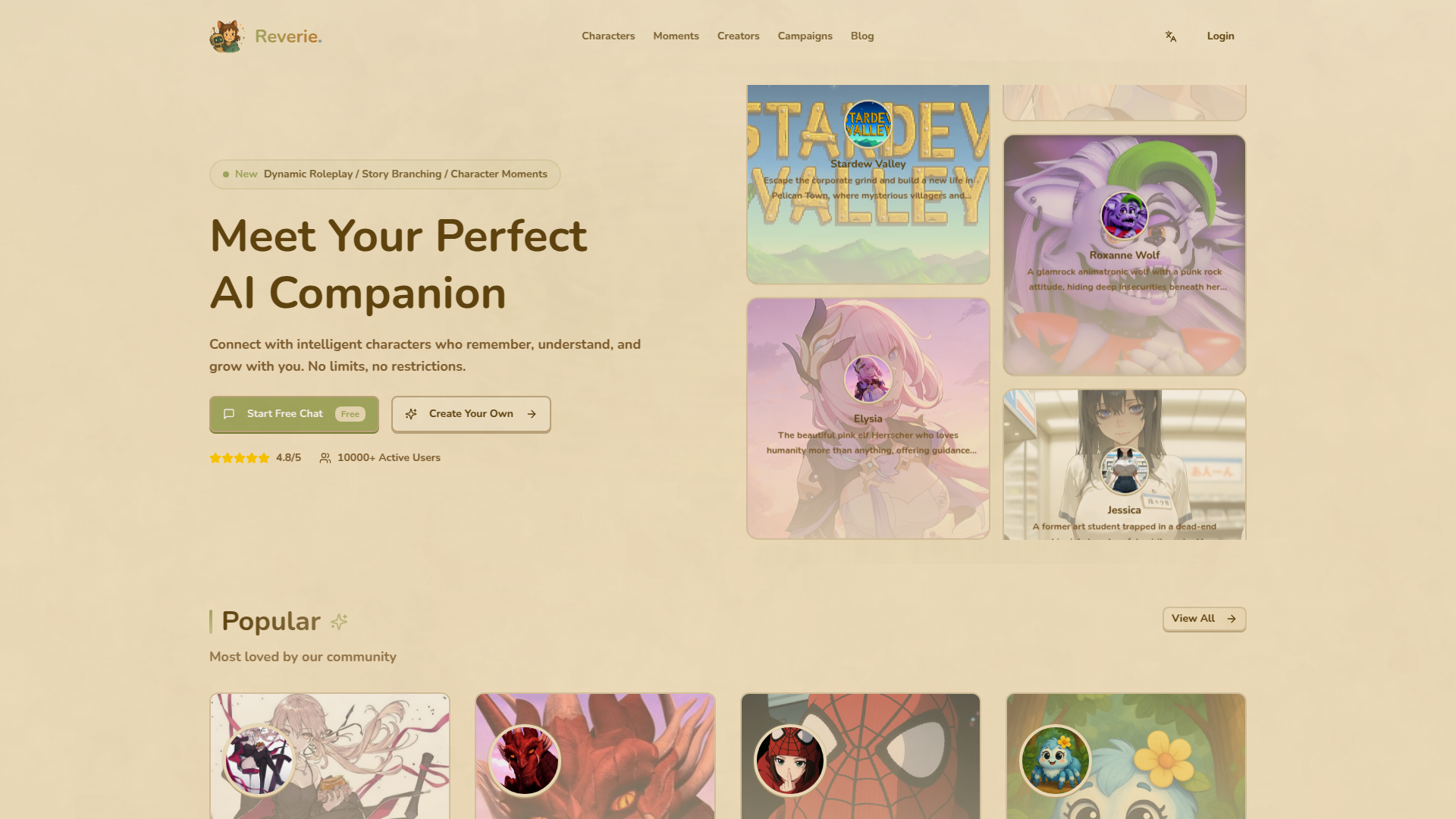 Reverie is an innovative AI-powered platform that enables users to engage in immersive character-based conversations and roleplay experiences. The website positions itself as a creative sandbox where users can interact with pre-built intelligent characters or create their own unique AI companions. Targeting anime fans, roleplay enthusiasts, writers, and anyone seeking imaginative social interactions, Reverie offers dynamic storytelling with branching narratives and character memory features. Its core technology focuses on natural language processing to create lifelike personalities that evolve through conversations. The platform enhances user experience through visually appealing character cards, community-shared 'moments', and robust creator tools for developing custom AI personas.