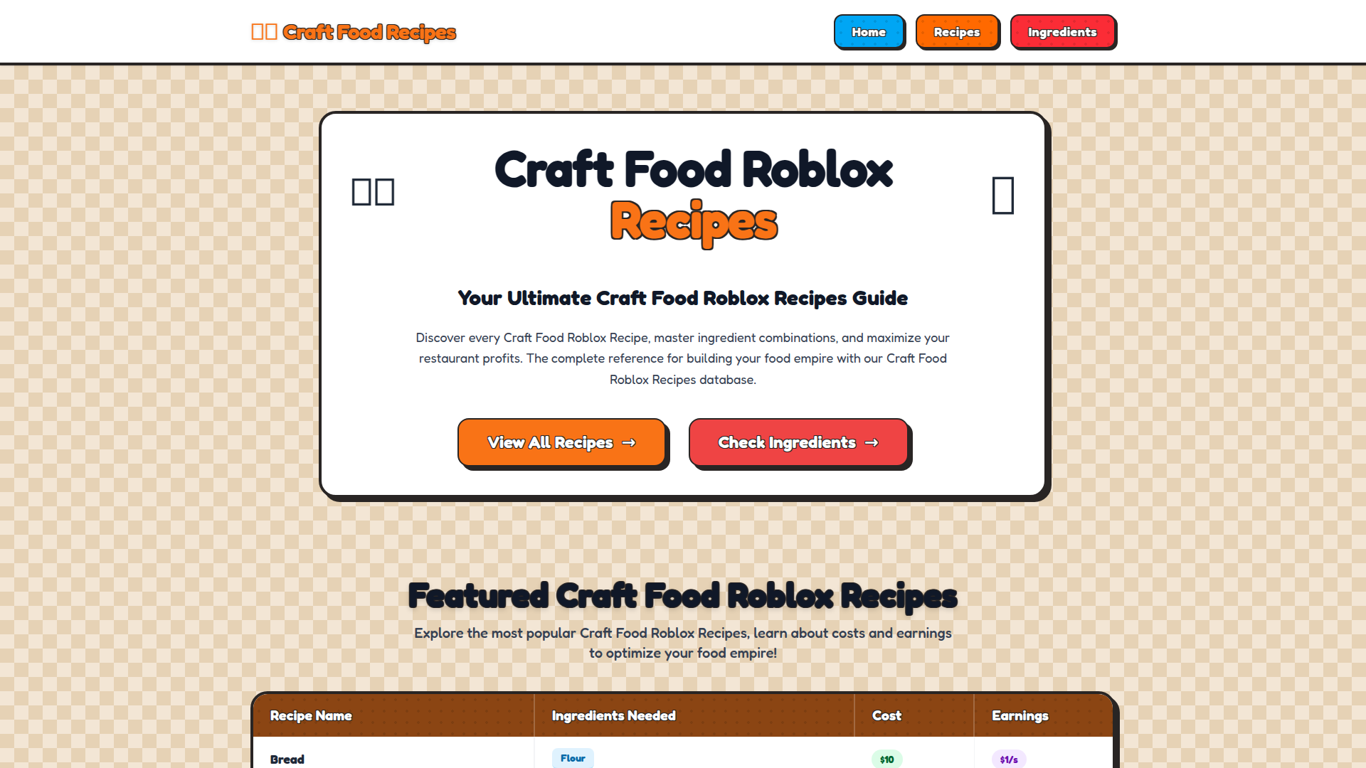 Craft Food Roblox Recipes is the ultimate companion for players of the popular Roblox simulation game, offering a complete database of recipes, ingredient guides, and profit optimization strategies. This platform serves as an essential resource for both casual players and serious entrepreneurs looking to build their virtual food empire. With detailed information on over 200+ recipes, ingredient prices, rarities, and cooking strategies, users can master the game's mechanics to maximize their earnings and progression.