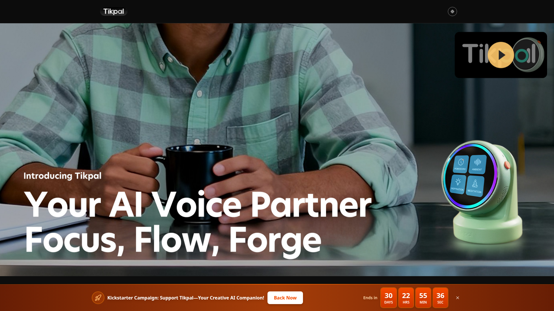 Tikpal is an AI-native creative companion designed to enhance focus and productivity through its multi-agent intelligence system. It combines distraction-free hardware with smart software integrations, offering real-time voice recording, intelligent organization, and seamless synchronization across devices. Targeted at creators and thinkers, Tikpal integrates with popular tools like Notion and Xmind while providing unique features like ambient sounds, Pomodoro timer, and AI-powered voice chat to maintain creative flow.