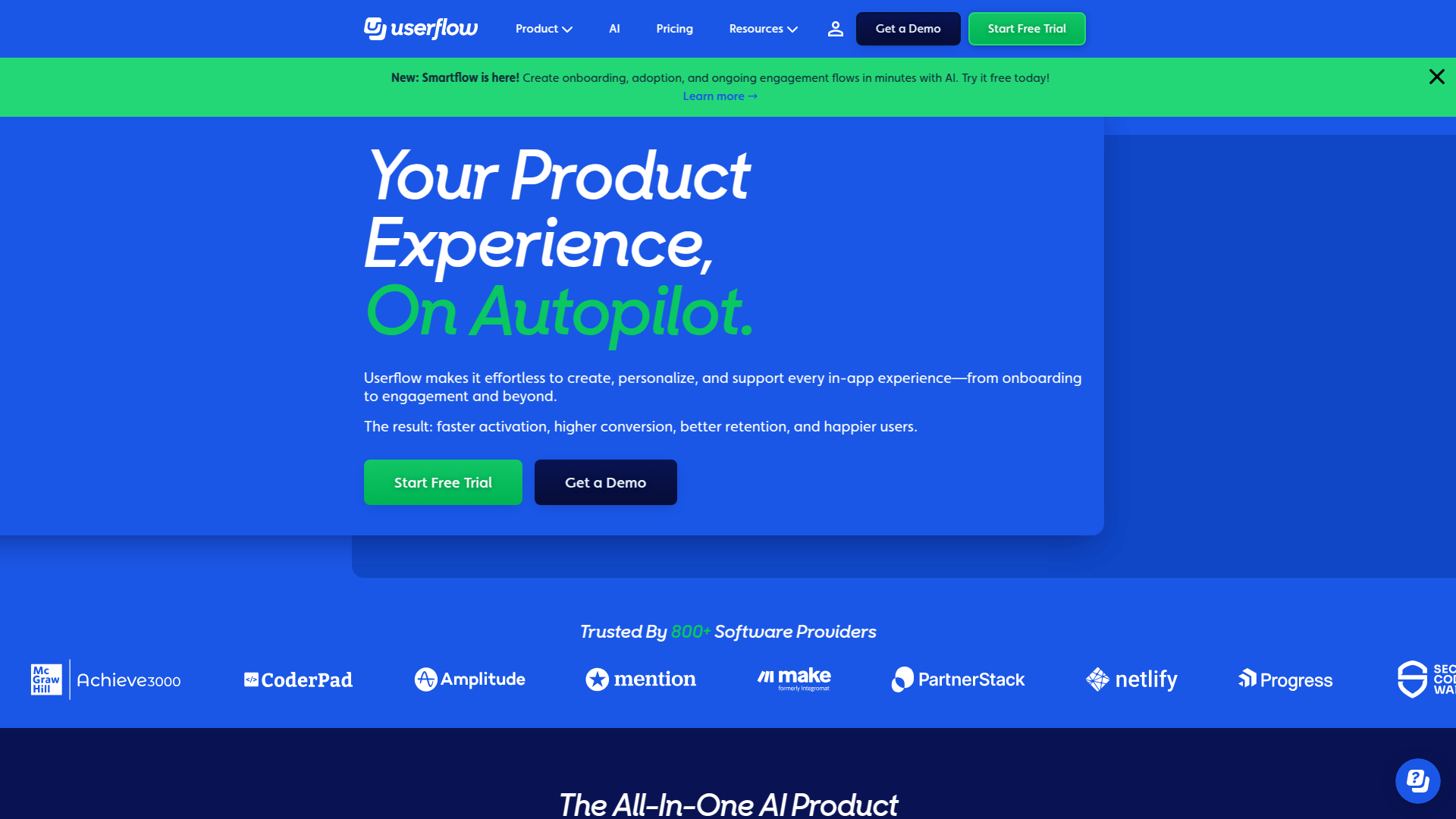 Userflow is an AI-powered product adoption and onboarding platform designed to streamline and enhance in-app user experiences. It enables businesses to create personalized product tours, checklists, surveys, and resource centers without coding. The platform focuses on improving user activation, conversion, and retention through intelligent automation. With features like AI-generated flows, instant in-app support, and content localization, Userflow empowers product, marketing, and customer success teams to deliver seamless user journeys from onboarding to ongoing engagement.